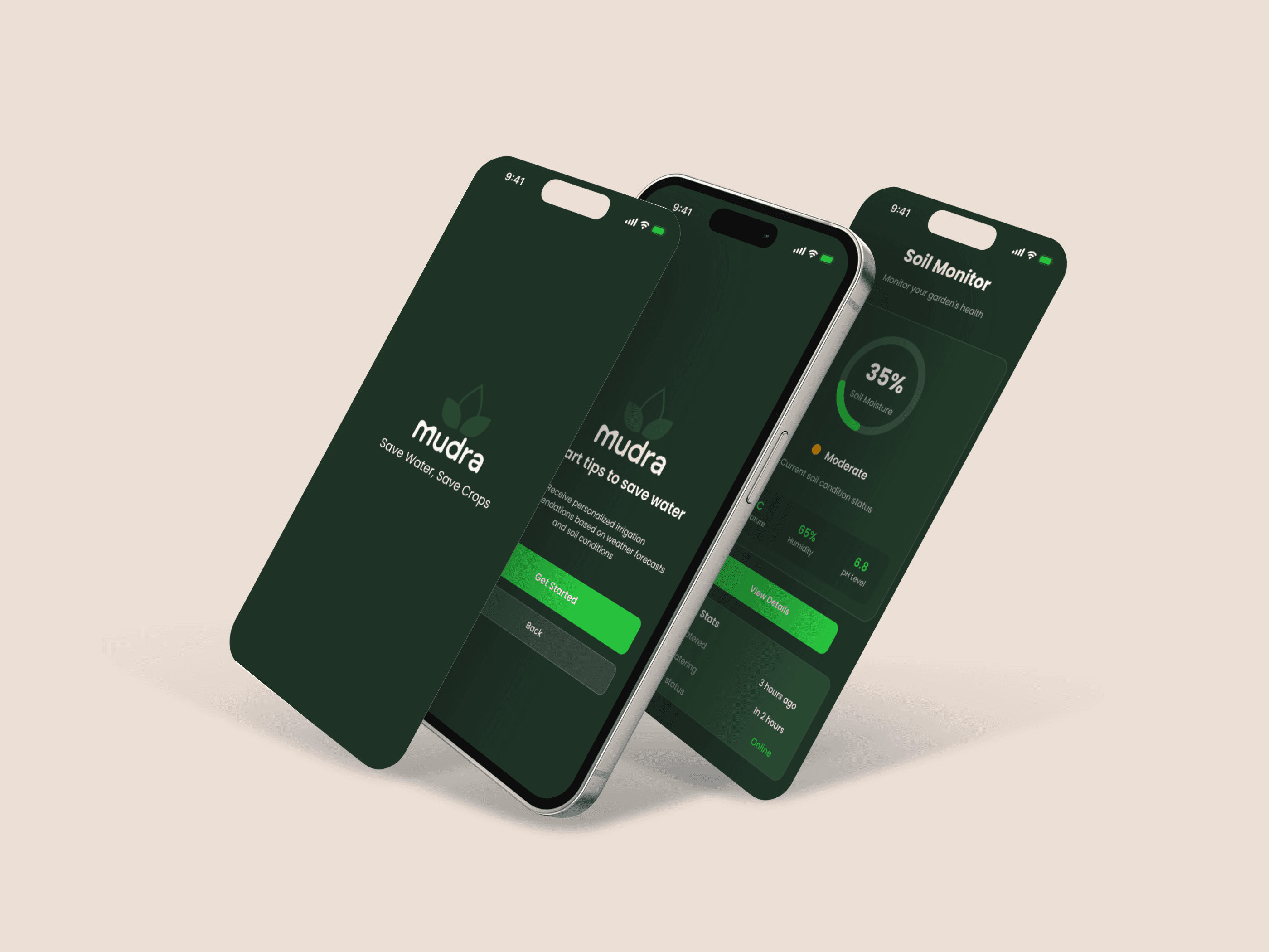 The resulting smart garden monitoring app delivers a seamless experience for farmers and gardeners, enabling them to easily track soil health, receive real-time weather-based irrigation recommendations, and optimize water usage. By combining intuitive design with powerful data insights, Mudra empowers users to make smarter, sustainable decisions for healthier crops and greener gardens.